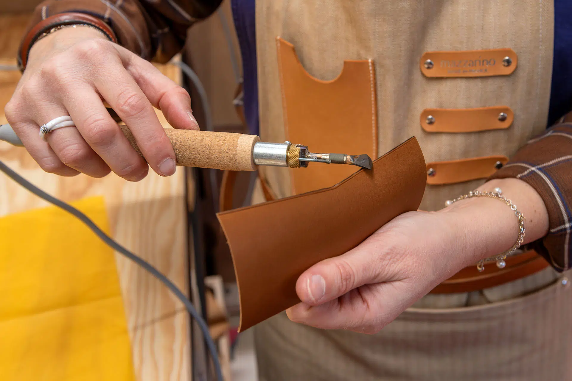 Les accessoires en cuir Mazzarino, confectionnés avec le plus grand soin, méritent un entretien attentif pour préserver leur beauté et leur durabilité. Qu’il s’agisse d’un bracelet, d’un cartable ou d’une ceinture, chaque pièce peut bénéficier d’une réparation ou d’une remise à neuf. Notre atelier propose ce service aussi bien pour les créations Mazzarino que pour des articles en cuir d’autres marques, afin de prolonger leur élégance et leur vie. Qu’il s’agisse de remplacer le fermoir d’un sac, de renforcer les coutures d’un porte-monnaie, de raviver la couleur des tranches ou de nettoyer vos articles en cuir, notre atelier redonne éclat et allure à vos pièces favorites.